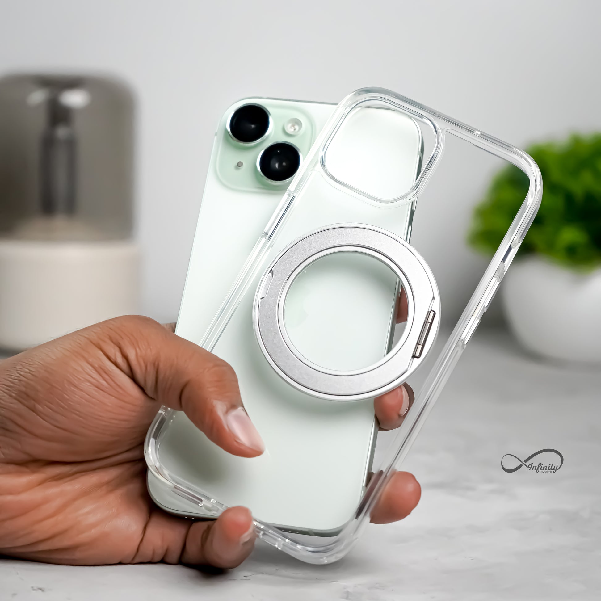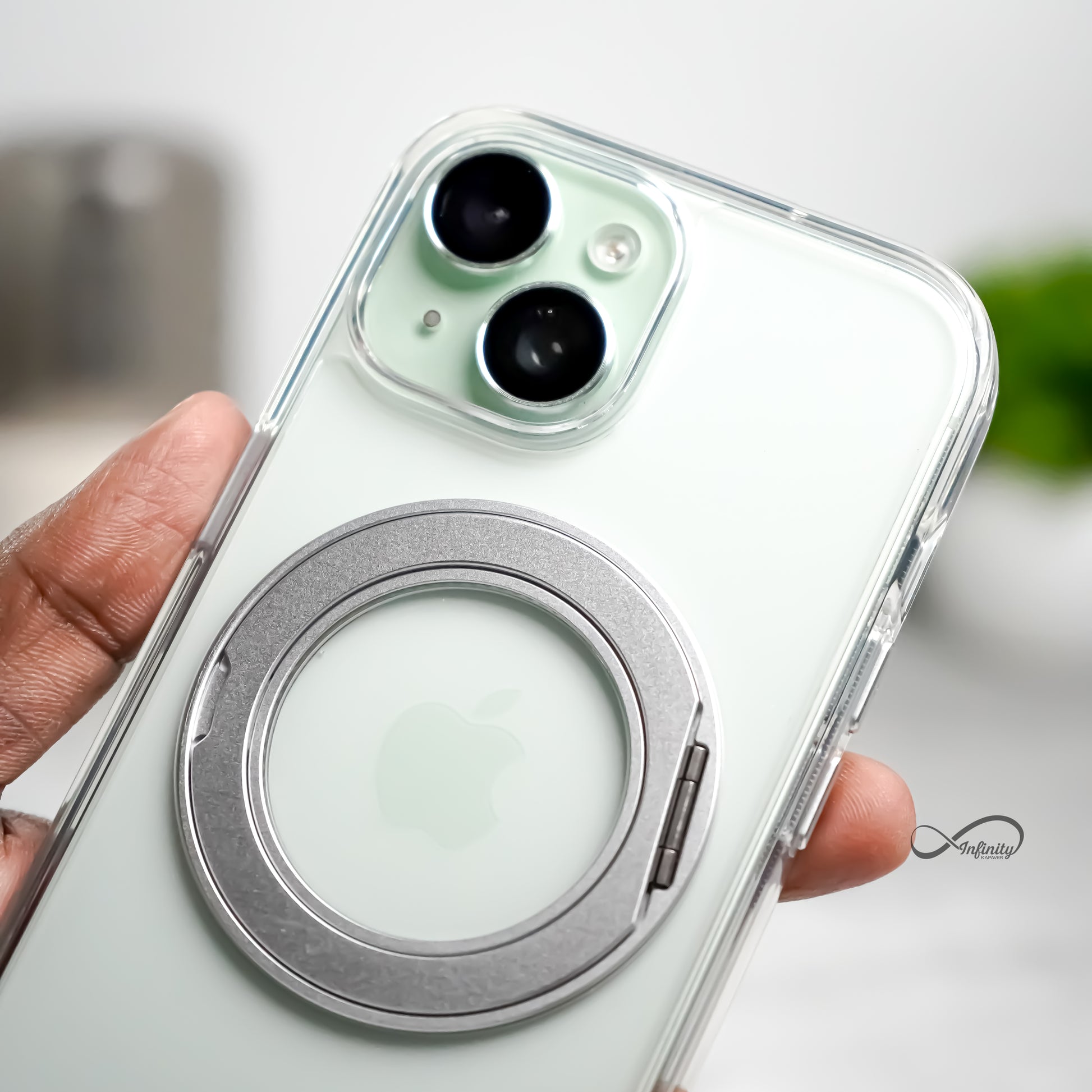 iPhone 15 Back Cover Case | 360 Kickstand Mag-X - Clear