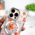 iPhone 16 Pro Max Back Cover Case | Floral Case Mag-X - Orange