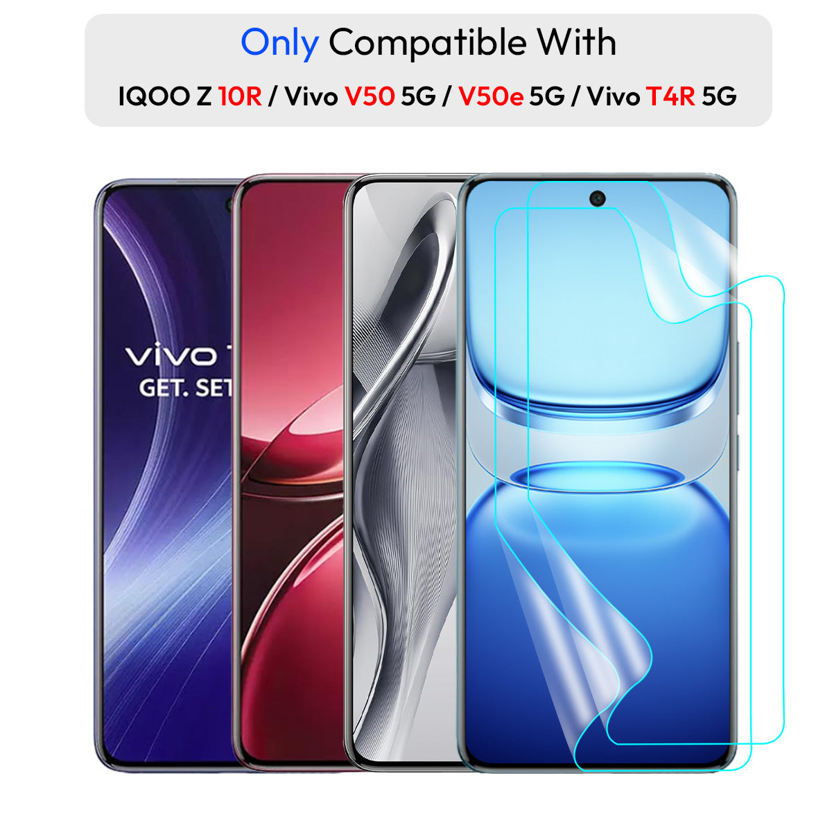 IQOO Z10R / VIVO V50 Screen Protector Guard [Clear] | Easy Do Film - 2 Pack [NOT TEMPERED GLASS]