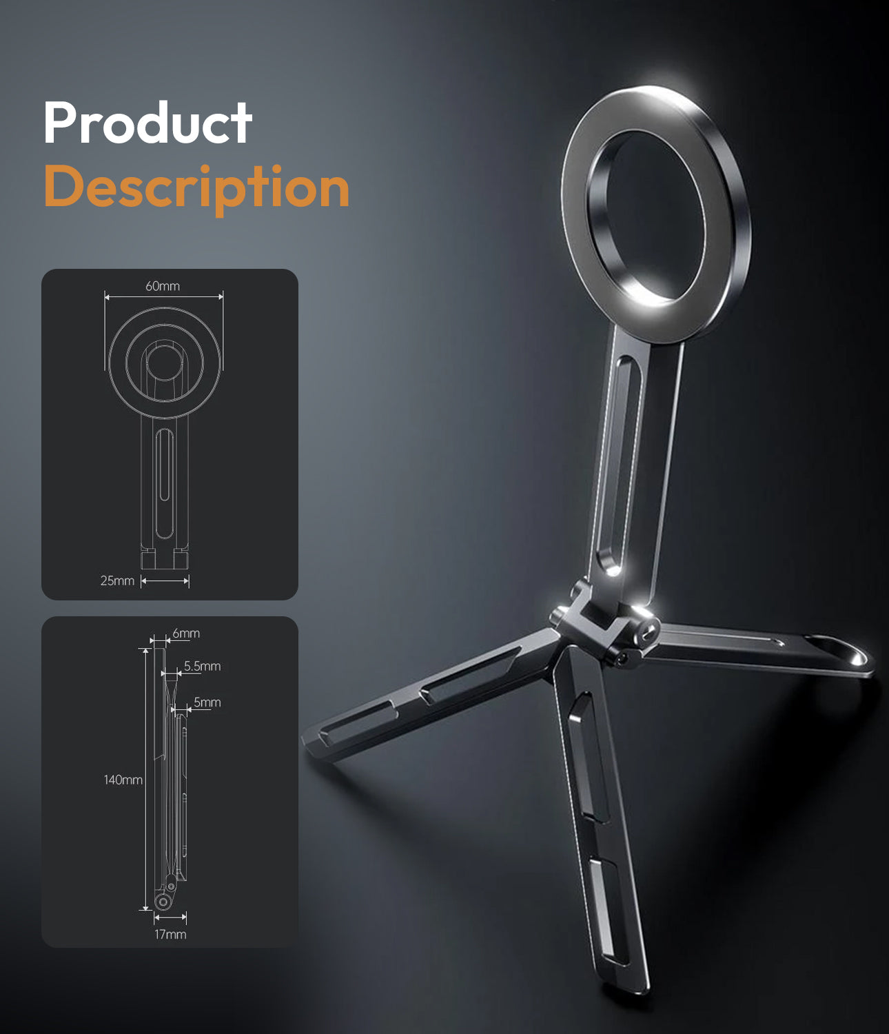 - Ultra-Stable 3-Leg Support: Sturdy metal tripod structure ensures firm balance on desks, tables, and smooth surfaces ideal for video calls, vlogging, and streaming.
