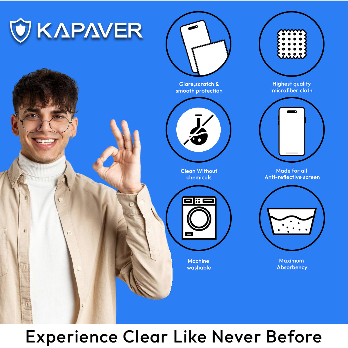 Protect and maintain your gadgets in style with the Kapaver Micro Fiber Cloth—the ultimate choice for those who demand the best in care and appearance. Invest today and enjoy peace of mind knowing your screens and lenses are always flawlessly clean.