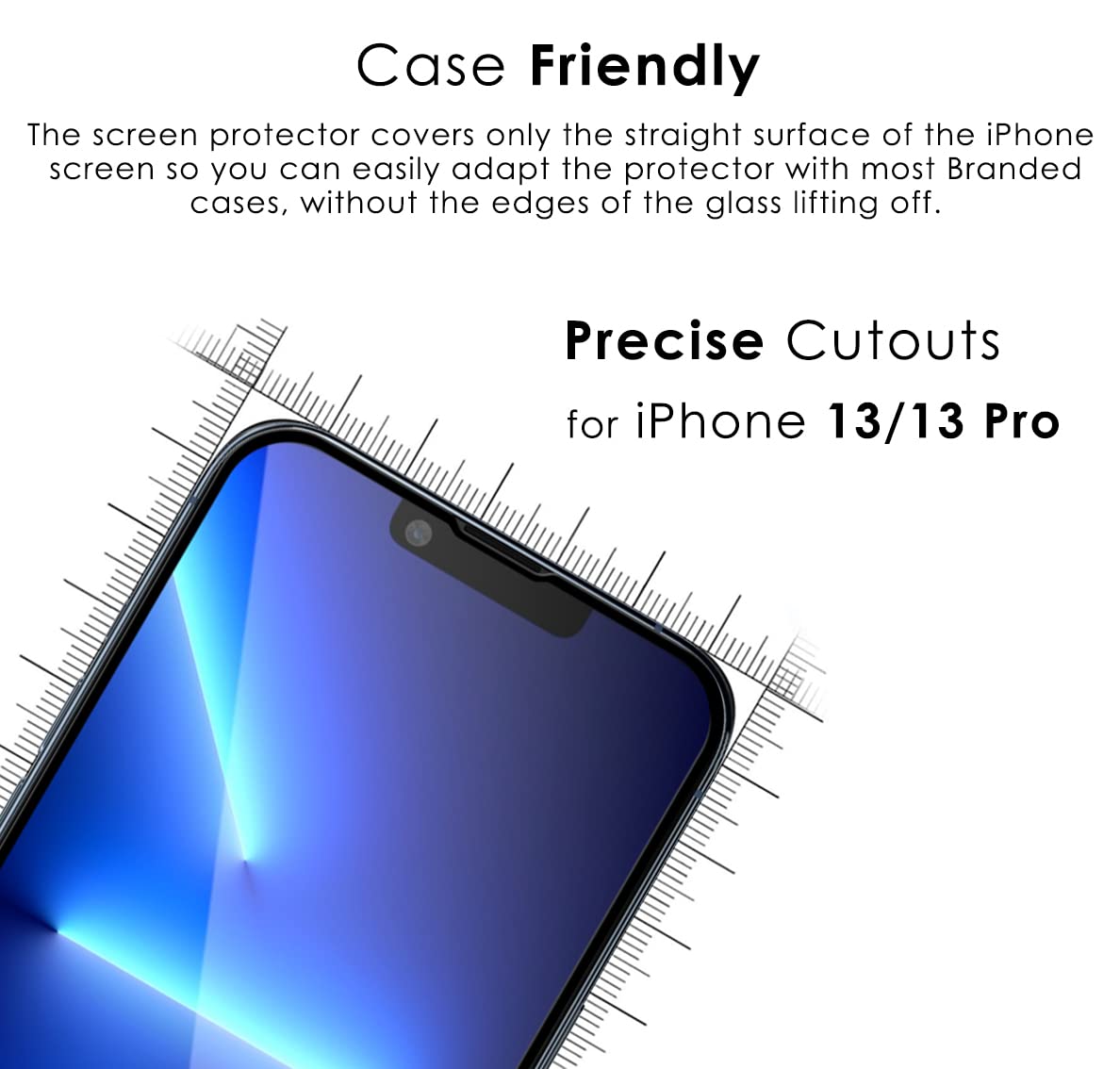 Protect your iPhone 13/13 Pro with ease using our (1 Pack) Easy FIT. With our Easy Fit Auto Align Technology, installation is a breeze and ensures a perfect fit every time. Our tempered glass set offers screen protection, ensuring your device stays in pristine condition. Our specialized screen protector keeps your front camera lens safe from scratches and damage, so you can take stunning photos and videos with confidence. Our tempered glass has a 9H hardness rating, effectively guarding against scratches, impacts, and everyday wear and tear. Enjoy a crystal-clear display with optimal brightness, colour accuracy, and touch sensitivity. Our tempered glass is of the utmost quality, maintaining the original visual quality of your device while offering reliable protection. Whether you're watching videos, browsing the web, or gaming, our tempered glass enhances your visual experience.