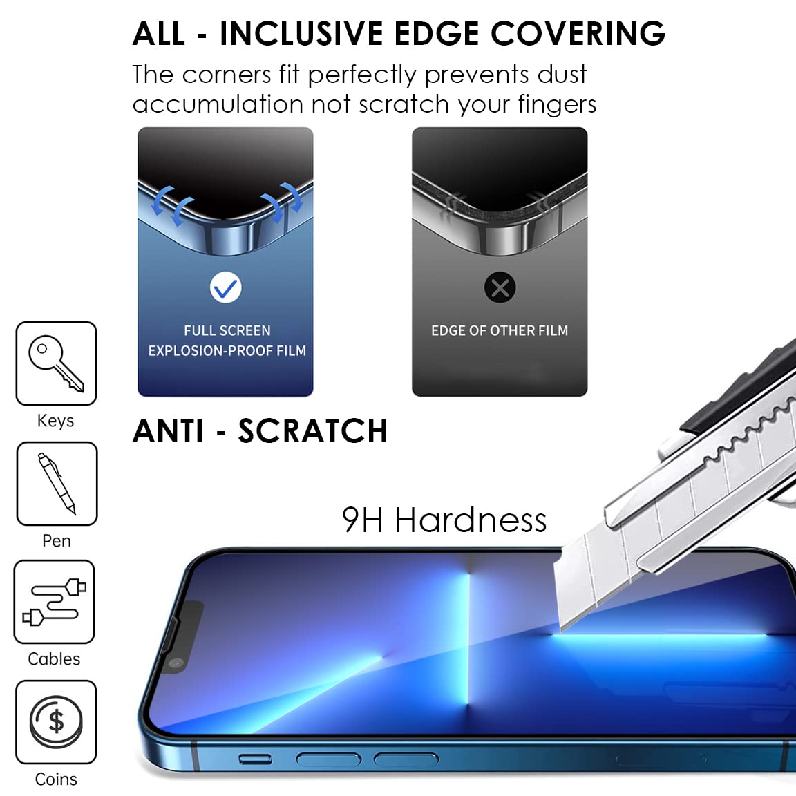 Edge-to-Edge Protection: All-around adhesive covers the screen with no lifting