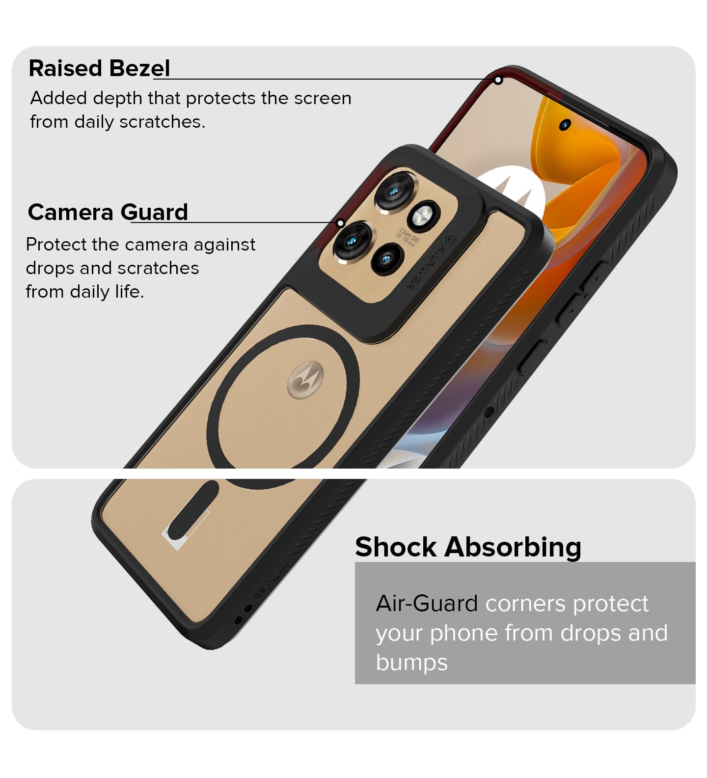 Military-Grade Protection:Â The Kapaver Case is built to withstand even the toughest drops and impacts. It meets military drop-test standards (MIL-STD 810G 516.6) to ensure that your device stays protected from accidental falls and shocks.