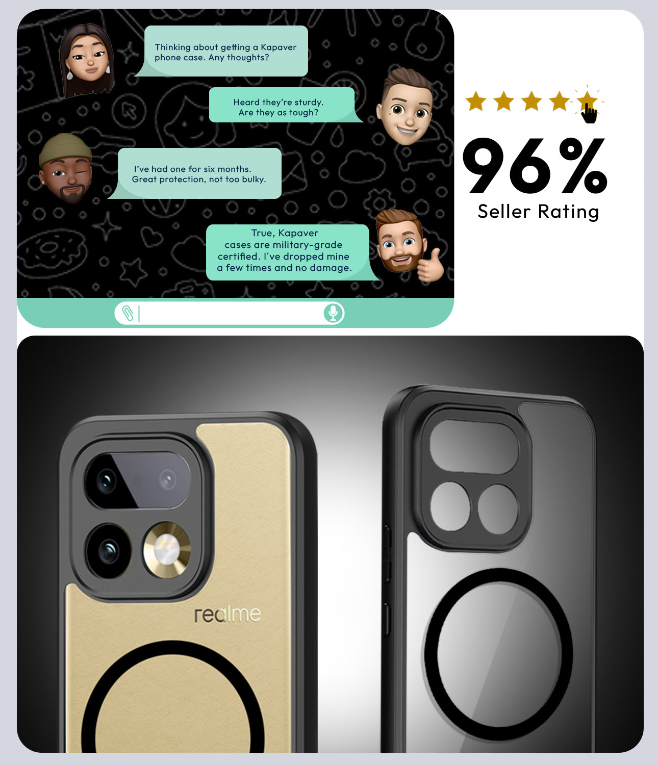 - Military-Grade Protection: The Kapaver Case is built to withstand even the toughest drops and impacts. It meets military drop-test standards (MIL-STD 810G 516.6) to ensure that your device stays protected from accidental falls and shocks.