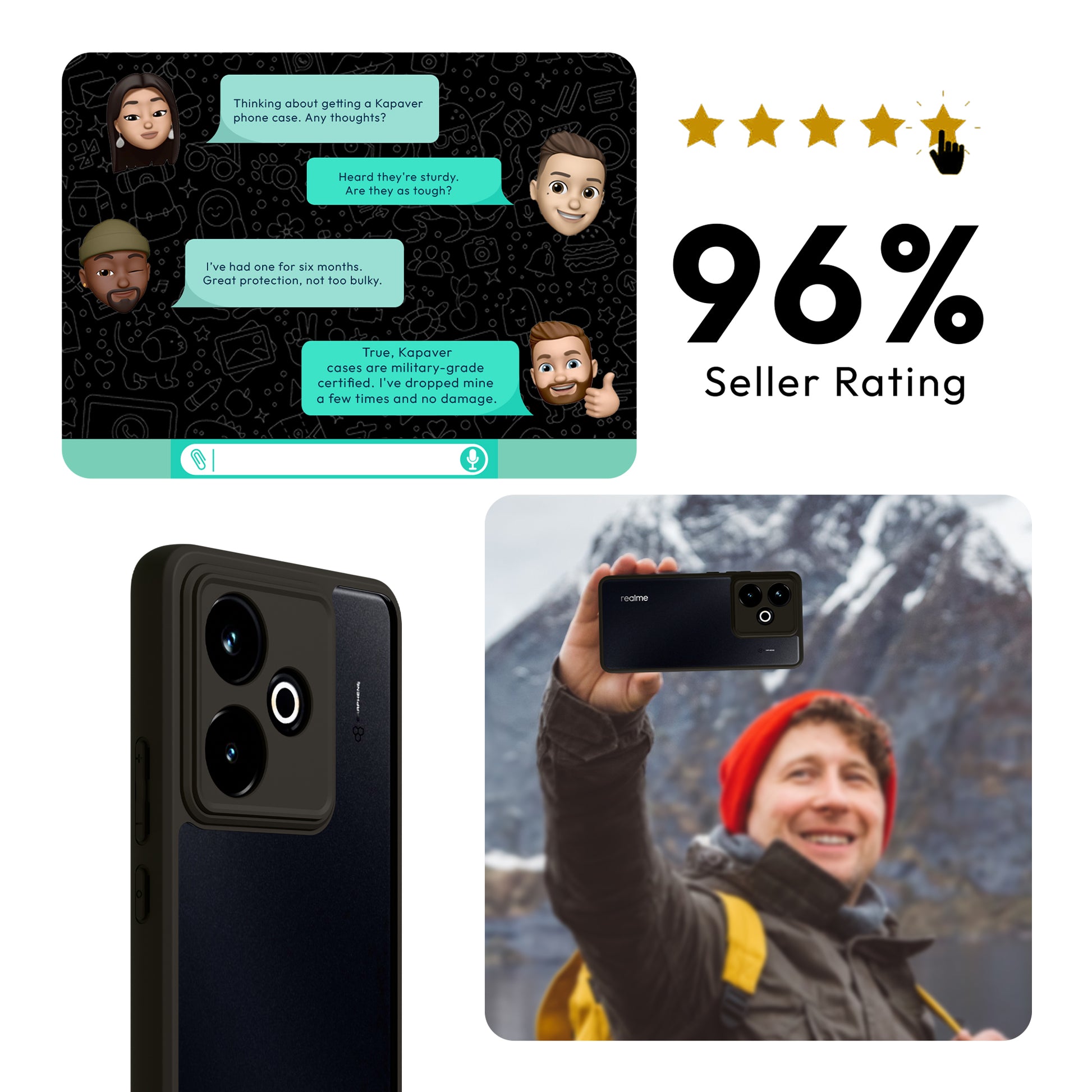 - Military-Grade Protection: The Kapaver Case is built to withstand even the toughest drops and impacts. It meets military drop-test standards (MIL-STD 810G 516.6) to ensure that your device stays protected from accidental falls and shocks.