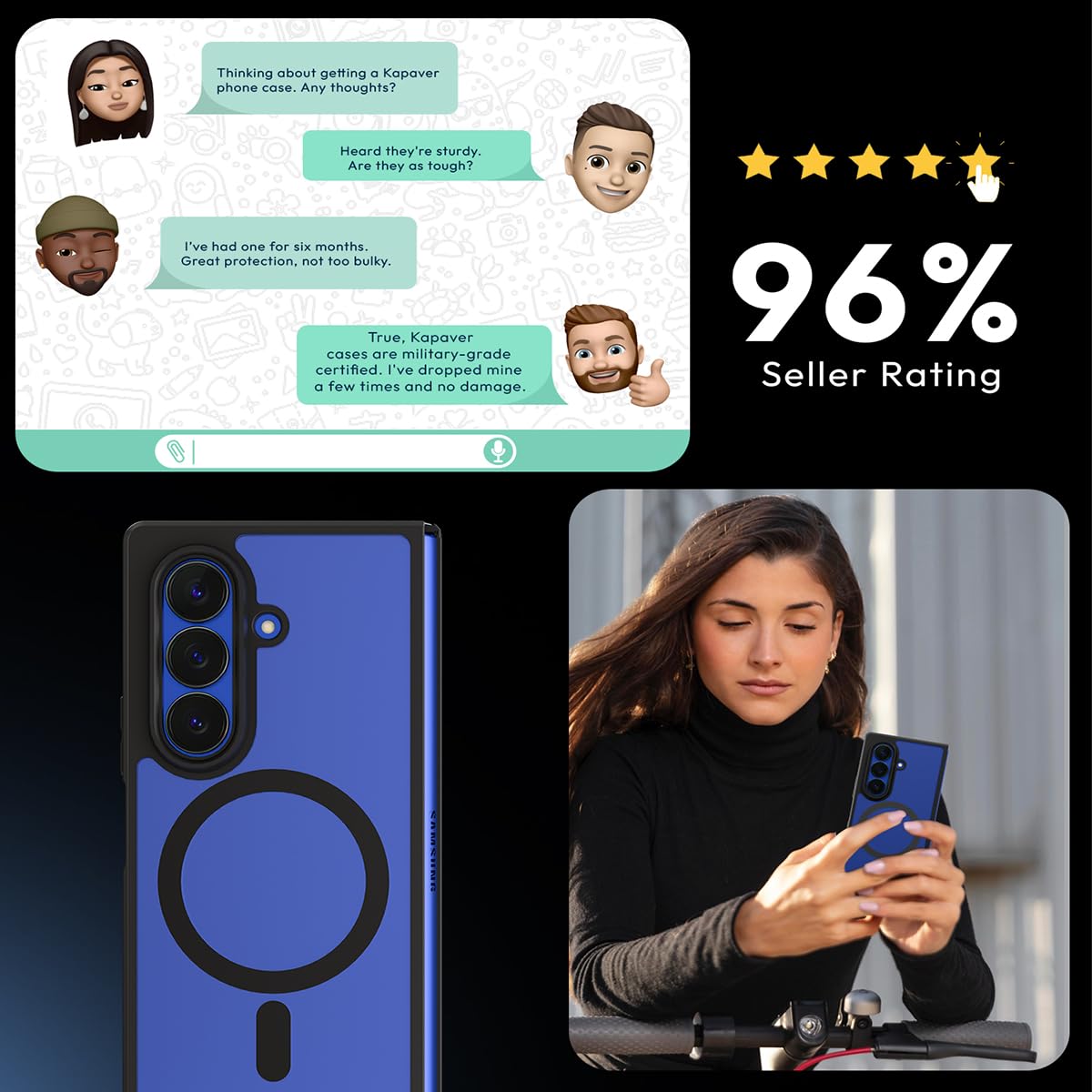 - Military-Grade Protection: The Kapaver Case is built to withstand even the toughest drops and impacts. It meets military drop-test standards (MIL-STD 810G 516.6) to ensure that your device stays protected from accidental falls and shocks.